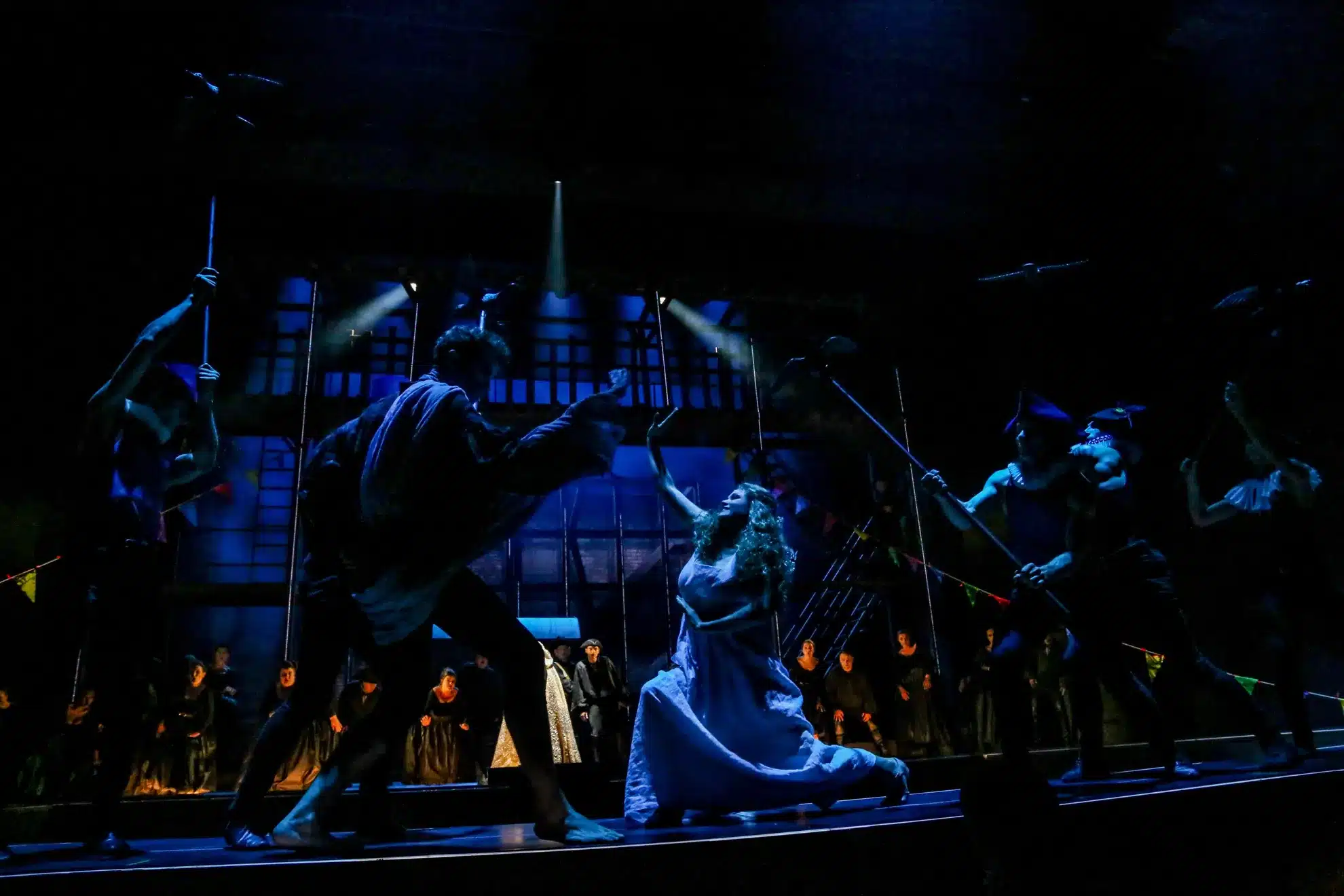 “Composer Frank Nimsgern (Tatort, Der Ring, SnoWhite) and authors Tilmann von Blomberg and Alexander Kuchinka (Zzaun!) have adapted the monumental work exclusively for the Staatsoperette Dresden, creating a dramatically opulent musical. Der Mann mit dem Lachen – a wild romantic historical drama that never loses sight of Victor Hugo’s social aspirations. The music – emotional and sincere – promises an exciting musical cocktail of baroque motifs combined with modern grooves, at times folkloristic, rocky, or song-driven.”