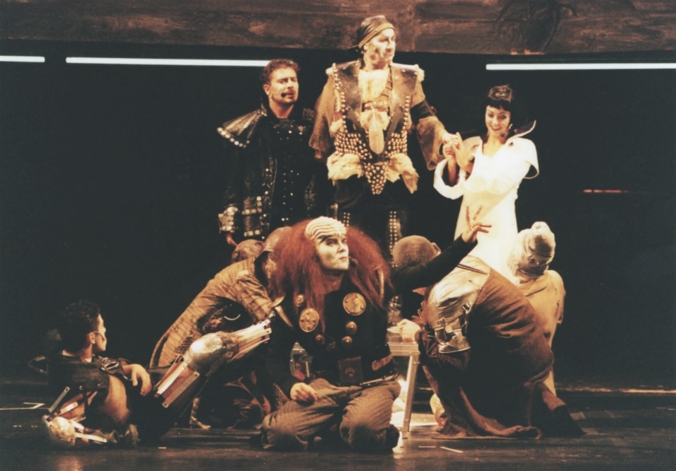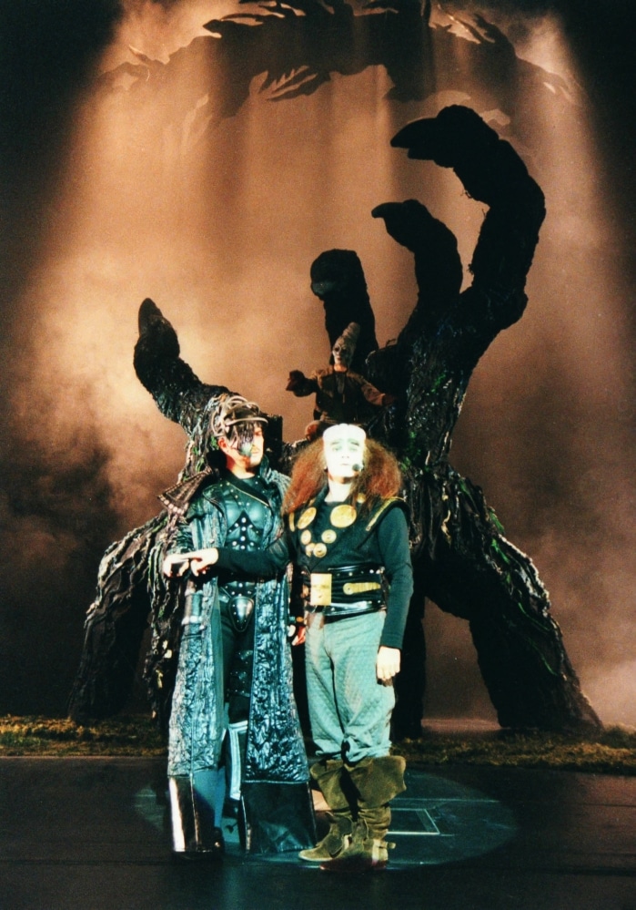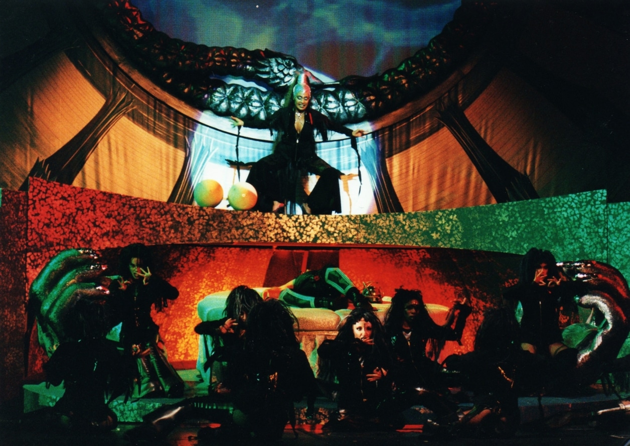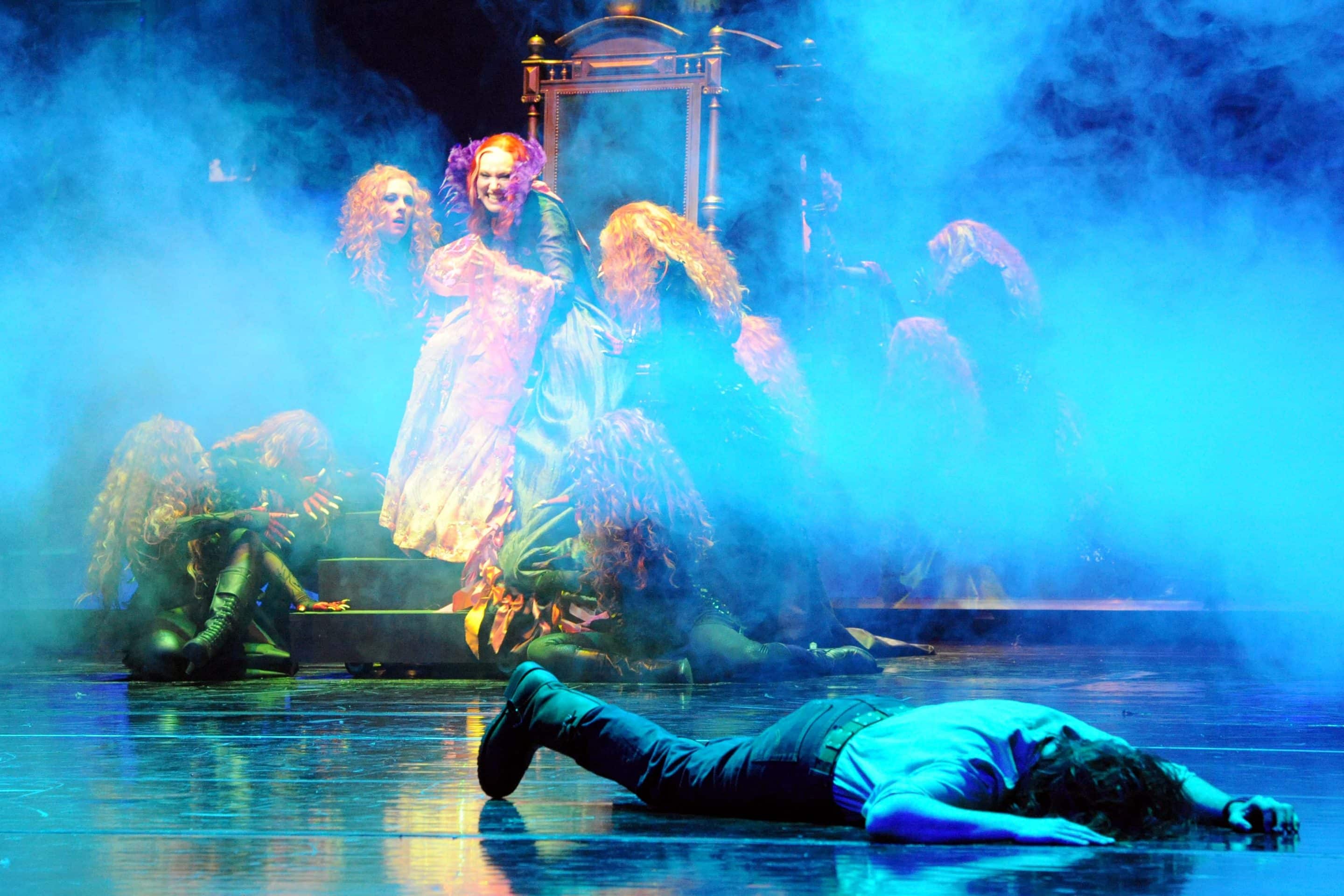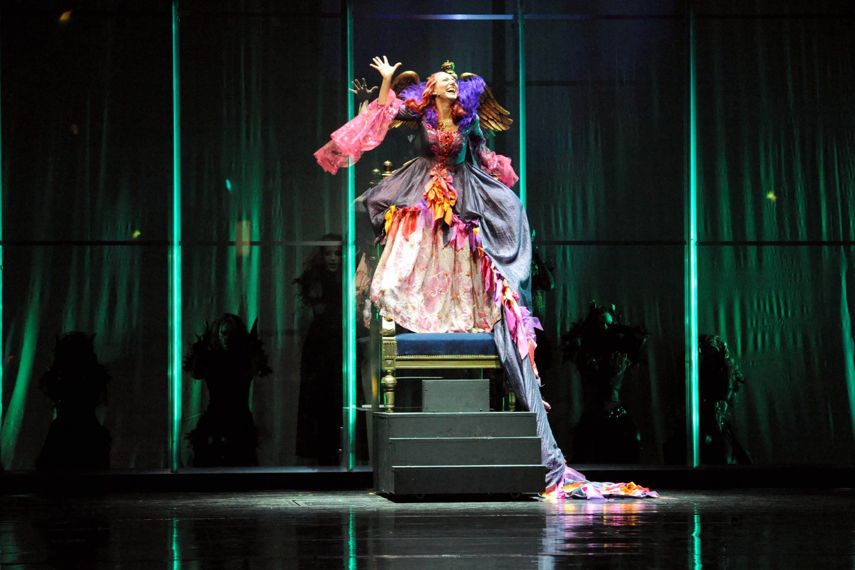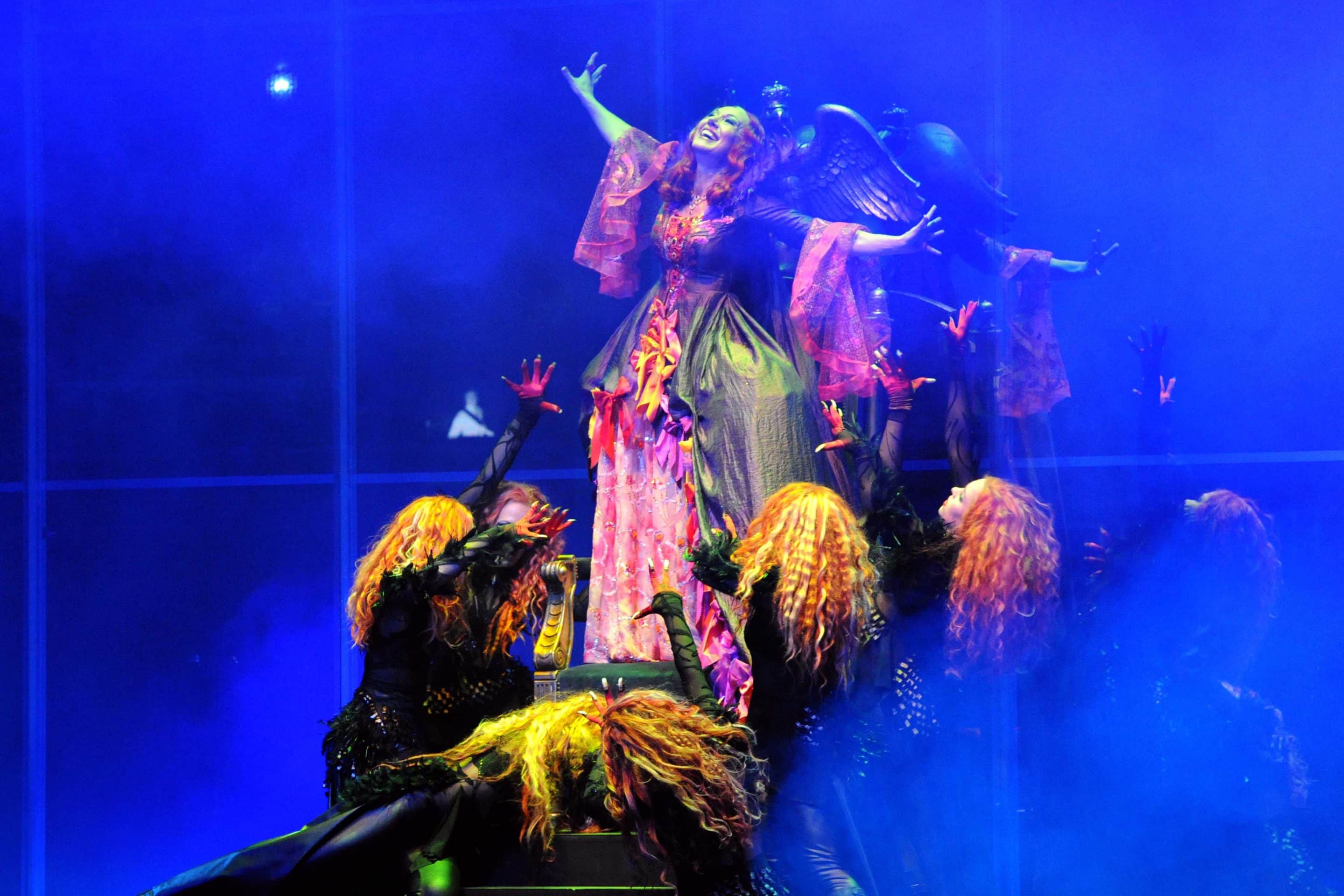 There is turmoil in the fairy-tale kingdom. Witches attempt to disrupt and ultimately destroy the fairy-tale world with the help of a “spy.” The Snow White story, confronted with such an attack, provides fertile ground for a large-scale musical spectacle. Monumental fantasy worlds and sounds combine with musical highlights that strike directly at the heart—and the gut. Witches and dwarfs, hunters and hunted.
