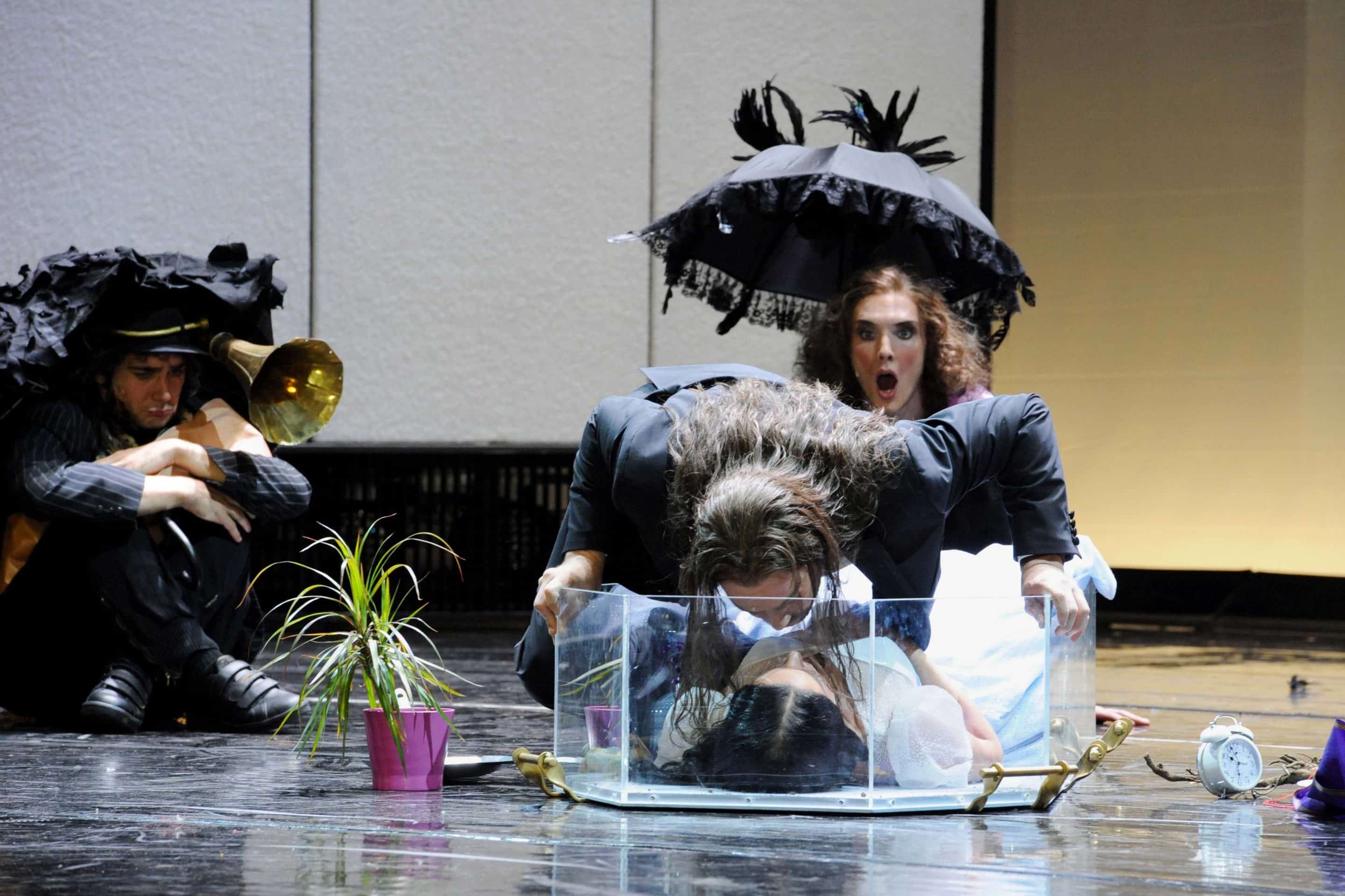 Through an oracle’s prophecy, they grant the Hunter—initially without his knowledge—the power to awaken Snow White with a kiss. This occurs, but with an unexpected final twist to the entire story and the evening as a whole.